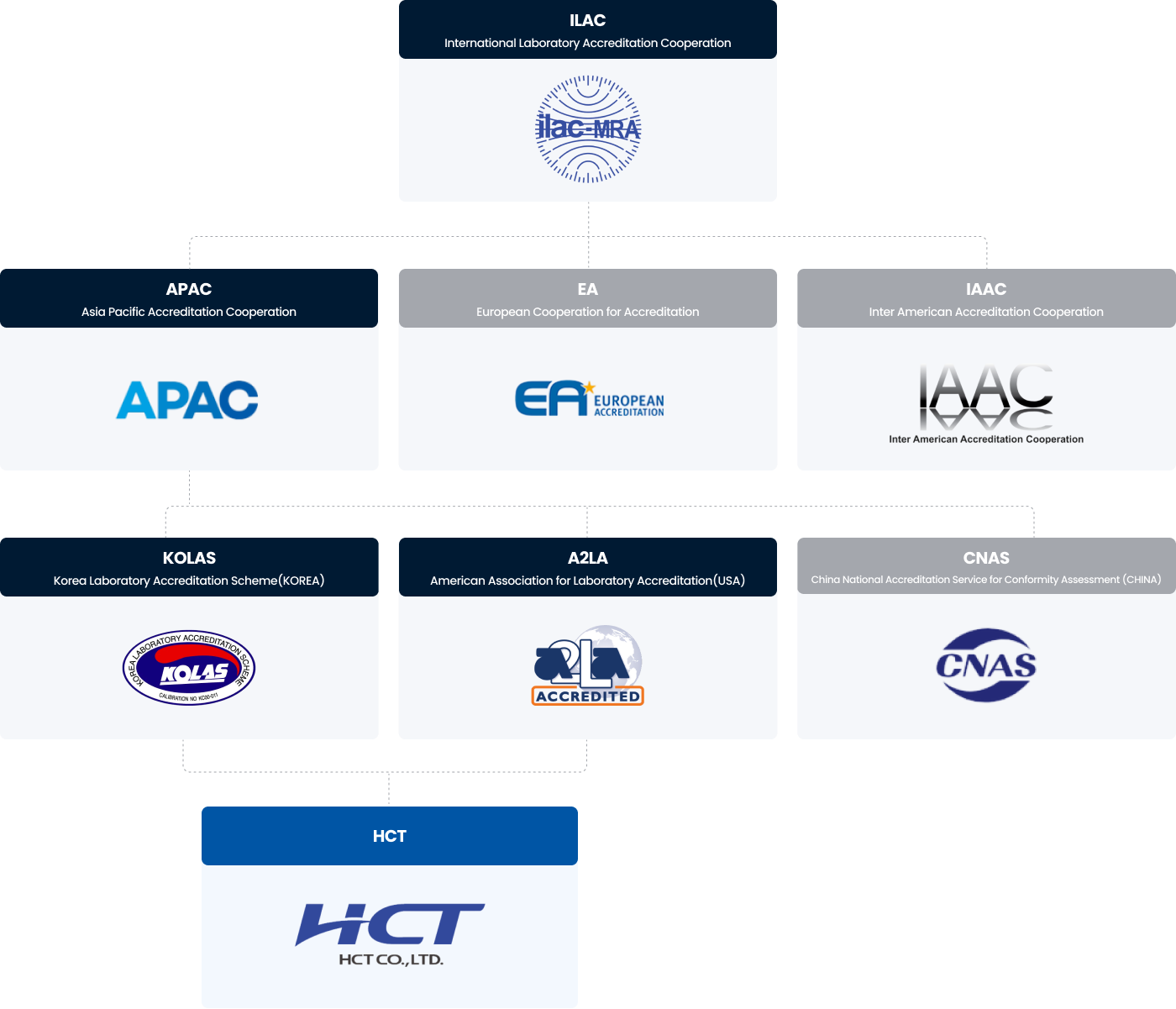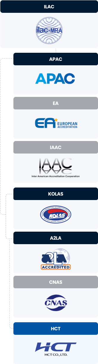 (Korea Laboratory Accreditation Scheme)The Korea Laboratory Accreditation Scheme (KOLAS) is a government organization that promotes the establishment of a national standards system and the operation of a calibration laboratory accreditation system. By participating in international accreditation body councils, such as APLAC (Asia Pacific Laboratory Accreditation Cooperation) and ILAC (International Laboratory Accreditation Cooperation), and signing MRAs (Mutual Recognition Agreements), KOLAS actively addresses technical trade barriers from developed countries and contributes to the development and growth of domestic industries. By successfully completing equivalence assessments between accreditation bodies and consistently participating in international accreditation and proficiency testing, KOLAS is enhancing Korea's status in the field of conformity assessment.